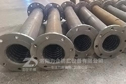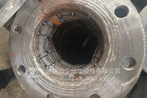 在有負(fù)壓的工況下,使用鋼襯四氟管需要采用模壓工藝制作,為了避免在有負(fù)壓工況下使用出現(xiàn)狀況,在鋼襯四氟管內(nèi)壁可加鋼絲網(wǎng),增加其內(nèi)襯的牢固性。下面我們來看一下生產(chǎn)過程中的鋼襯四氟管是什么樣子的: